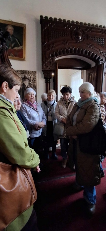 Pierwszym punktem programu było zwiedzanie zamku obronnego w Kórniku, związanego z rodami Górków i Działyńskich. Zamek, pełen historycznych pamiątek i tajemniczej atmosfery, wzbudził duże zainteresowanie wśród uczestników. Przewodnik opowiadał nie tylko o historii rodu, ale także o słynnej Białej Damie – duchu